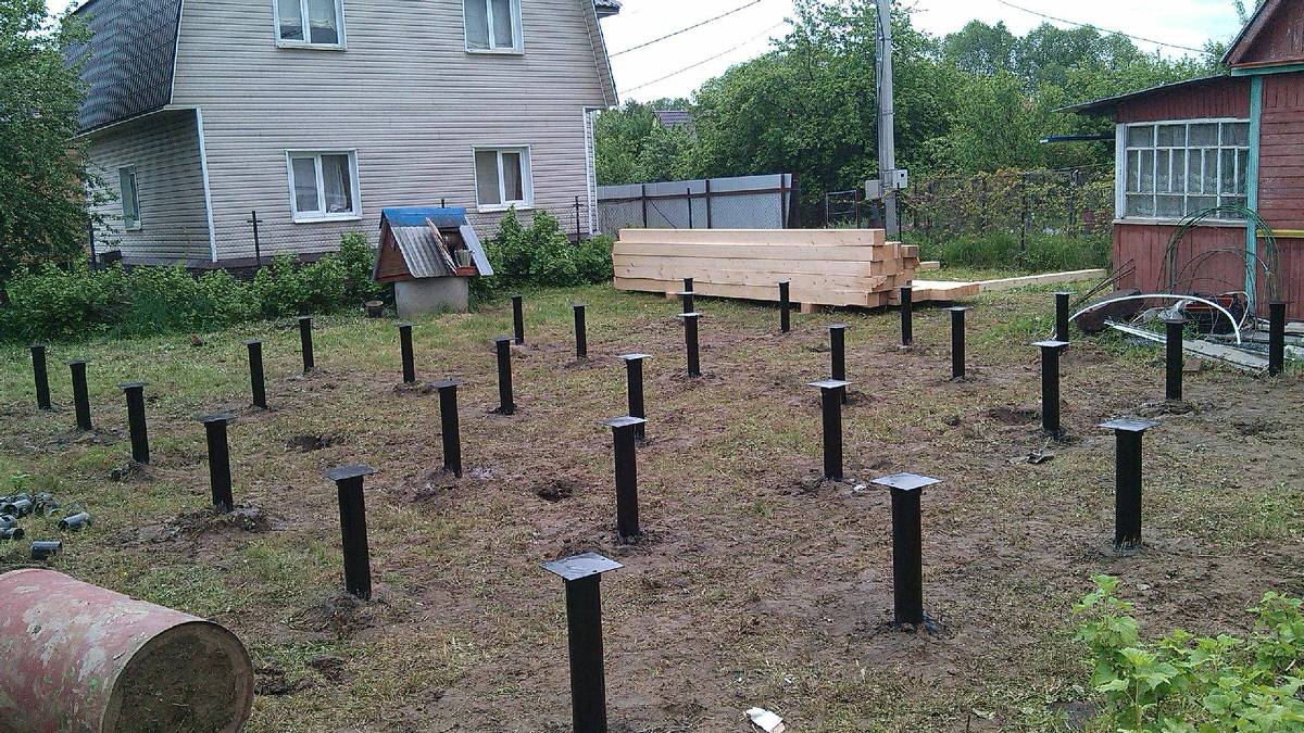 Для монтажа фундамента требуется один-два дня. После окончания работ не нужно ждать высыхания смеси, как в случае с бетонным основанием. Кроме того, свайный фундамент не дает усадку.
